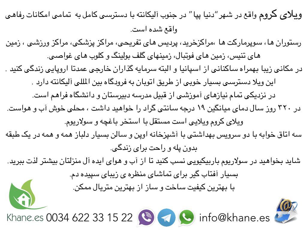 ویلای کروم ویلایی است مستقل با استخر باغچه و سولاریوم.