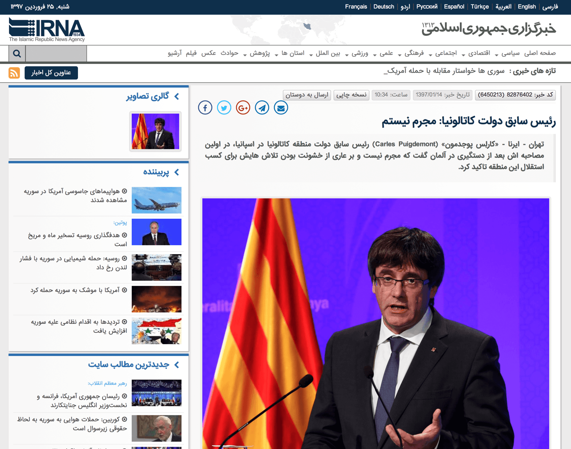 رئیس سابق دولت کاتالونیا به دلیل برگزاری همه پرسی این منطقه در اکتبر 2017 (مهر 96)، با حکم 30 سال حبس دستگاه قضایی اسپانیا مواجه است. دولت مادرید این همه پرسی را غیر قانونی اعلام کرده است.