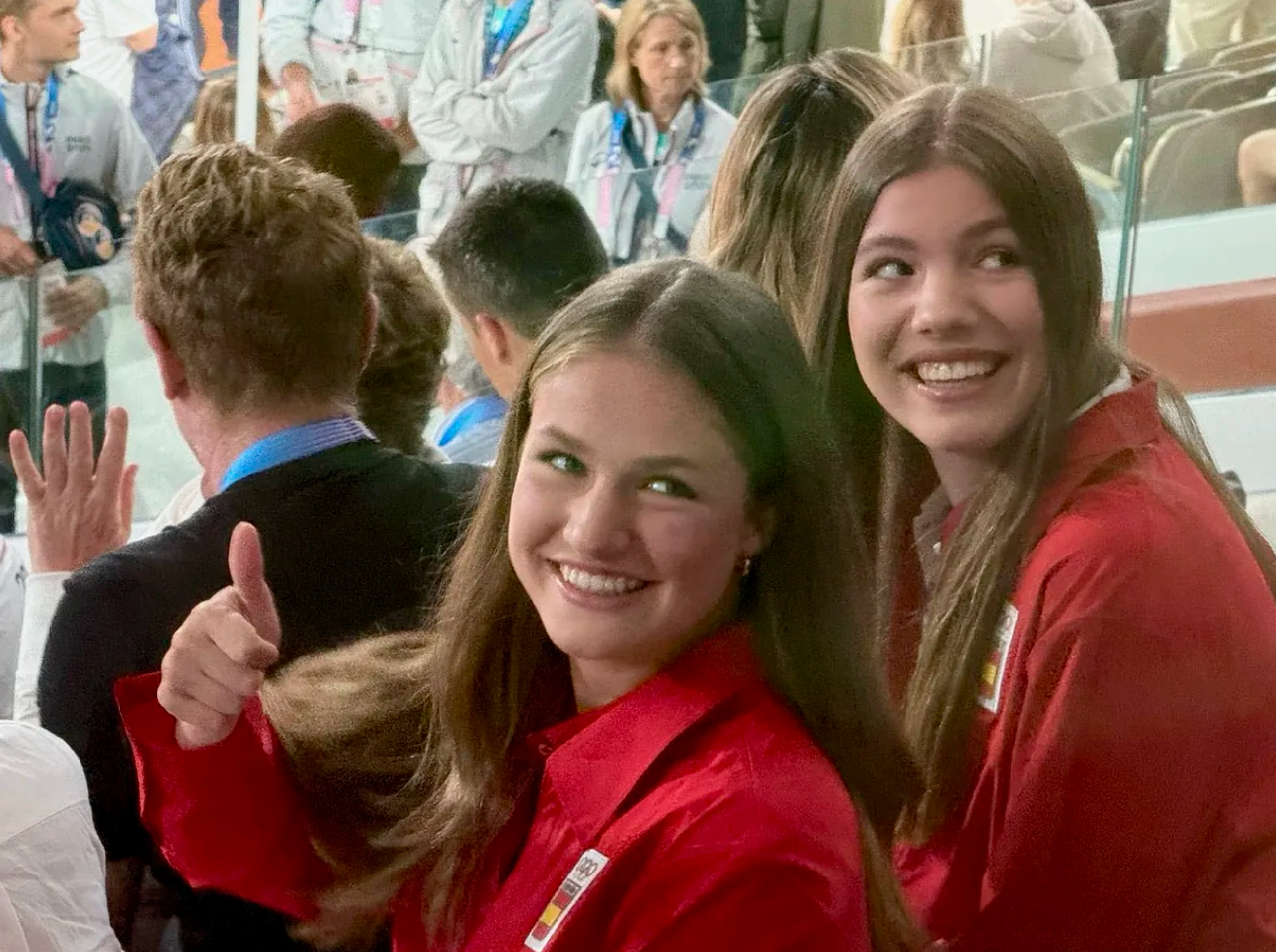 این اولین باری است که دختران پادشاه و ملکه شاهد بازیهای المپیک از نزدیک هستند، جایی که آنها کت قرمز تیم اسپانیا را به تن داشتند.
